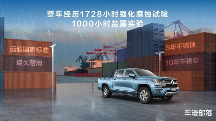车身结构也够结实:整车采用高强度笼型车身,大截面加强型车架设计,车架高强钢占比超98%,截面宽度同级最大,承载能力更强,安全性也更高。为了应对各种恶劣环境,整车还经过了1728小时强化腐蚀试验、1000小时盐雾实验,这可比国家标准高多了,能做到5年不锈蚀、10年不锈穿,就算常年在海边、潮湿地区跑,也不用担心车身生锈。